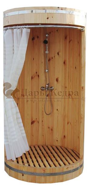 Деревянная круглая (овальная) душевая кабина из кедра Душевая кабина круглая (овальная) открытого типа, лёгкая и изящная, впишется в любой интерьер и будет хорошо смотреться, как на улице так и в помещении. Круглая душевая кабина из кедра придаст презентабельный вид вашей ванной комнате или спа-салону. Обращаем Ваше внимание, что потолочный светильник, штанга для шторки, душевая лейка не входят в стандартную комплектацию душевой кабины. Древесина кедра богата эфирными маслами, которые при воздействии температур испаряются в воздух, что благотворно воздействует на организм во время принятия душа.