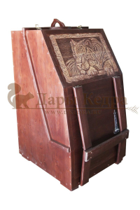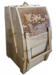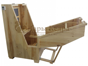 Квадратная двухрежимная фитобочка из кедра может быть использована как инфракрасная сауна и парная. Карбоновые излучатели отвечают за сухое парение, они находятся на внутренней стороне дверцы и задней стенке фитобочки. Влажное парение происходит за счет поступления горячего пара в фитобочку через паропровод. Толщина стенок составляет 40-45 мм, что позволяет увеличить срок службы изделия. Откидная дверь бочки во время открывания фиксируется внешней подставкой - опорой, которая в закрытом состоянии складывается и не занимает лишнее пространство. Во время парения человек сидит внутри кедровой бочки, а голова находится снаружи. Благодаря этому исключается возможность перегрева. Встроенная ручка на двери делают эксплуатацию фитобочки более удобной.
