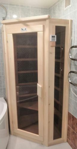 В ванную комнату по индивидуальным размерам заказывала угловую сауну с карбоном, сауна пришла очень гладенькая, сделана с душой - это прямо видно. В уголок сауна встала, как встроенная, смотрится очень компактно и красиво!