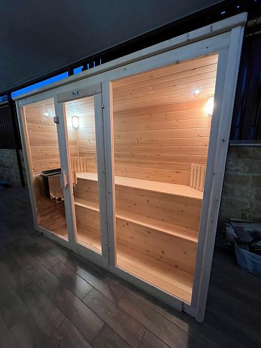 Пятиместную сауну я заказывал для санатория, установил в аква-зоне, рядом с бассейнами, смотрится очень круто, современно! Единственный момент был - это трудность со сборкой. Но помощь технолога Елены очень помогла, и мои сборщики управились быстро! Спасибо компании, что развиваетесь, не стоите на месте, изготавливаете такие кайфовые изделия из кедра!